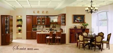 金牌廚柜此次推出的秋冬廚柜新品——索尼亞是一款具有古典優(yōu)雅氣息的實木廚柜,在設(shè)計上呈現(xiàn)出三大亮點: