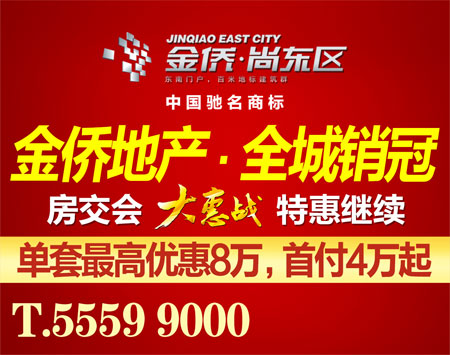 湘潭房產(chǎn)網(wǎng)11月09日訊   金僑·尚東區(qū)房交會大惠站特惠繼續(xù),單套最高優(yōu)惠8萬,首付4萬起,限時搶購!