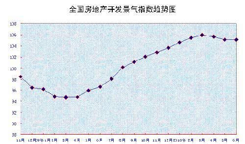 6月份,全國房地產(chǎn)開發(fā)景氣指數(shù)(簡稱“國房景氣指數(shù)”)為105.06,比5月份回落0.01點(diǎn),比去年同期提高8.51點(diǎn)。