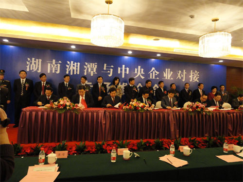 1月15日上午,2011年湖南湘潭(北京)央企對(duì)接專場推介會(huì)暨簽約儀式在北京世紀(jì)華天大酒店隆重舉行,活動(dòng)取得了圓滿成功。會(huì)上,發(fā)布重點(diǎn)招商項(xiàng)目32個(gè),有江麓軍民融合產(chǎn)業(yè)園、火車站南北廣場周邊土地整體開發(fā)等7個(gè)項(xiàng)目進(jìn)行現(xiàn)場簽約,投資總額140億元。