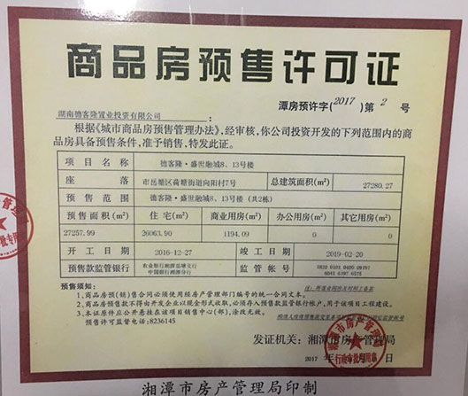德客隆·盛世融城10號(hào)棟(共1棟)預(yù)售許可證