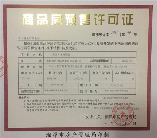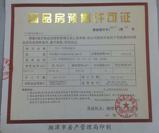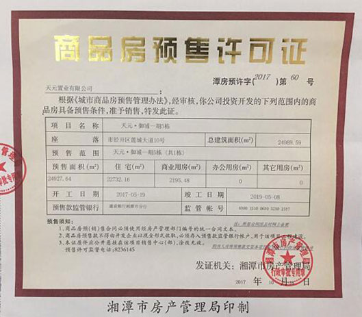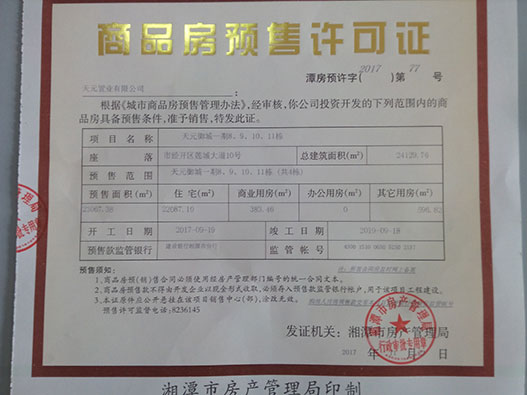 天元御城8、9、10、11棟(共4棟)預(yù)售許可證