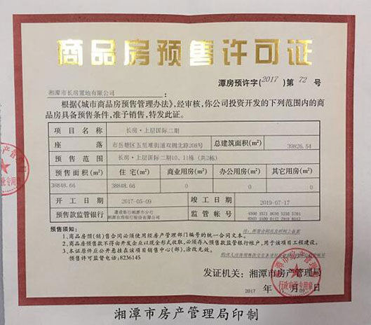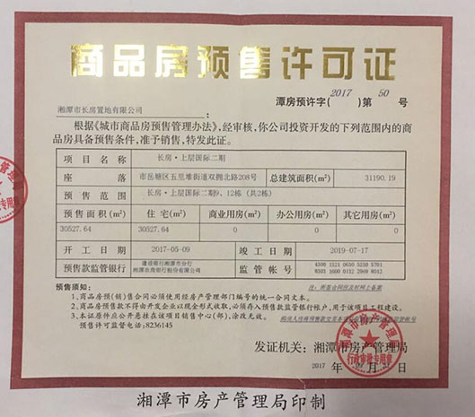 長(zhǎng)房·上層國(guó)際二期10、11棟(共2棟)預(yù)售許可證