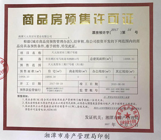 08 天元美居樂(lè)三期17號(hào)樓(共1棟)預(yù)售許可證
