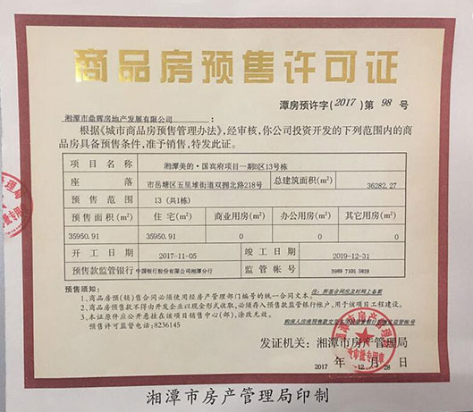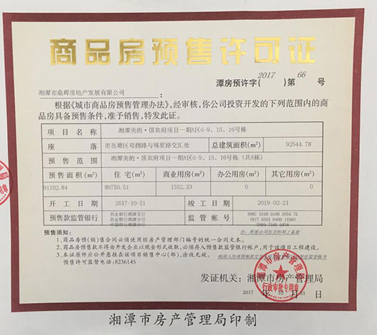 13 湘潭美的·國(guó)賓府一期A區(qū)6-9、15、16號(hào)棟(共6棟)預(yù)售許可證