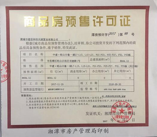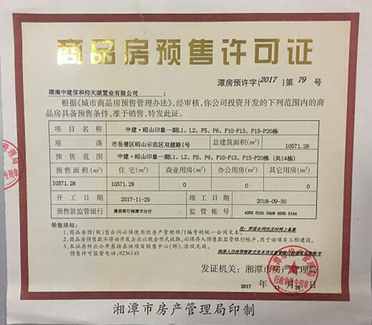 17 中建·昭山印象一期L1、L2、P5、P6、P10-P13、P15-P20棟(共14棟)預(yù)售許可證