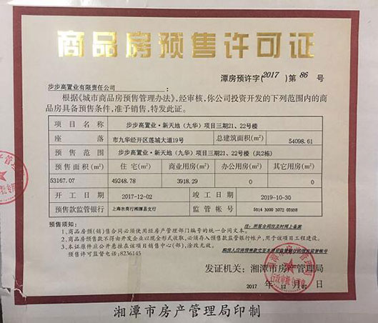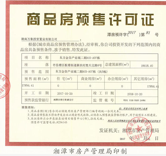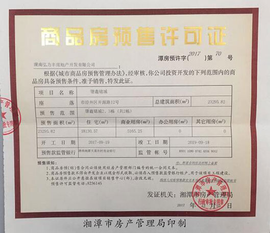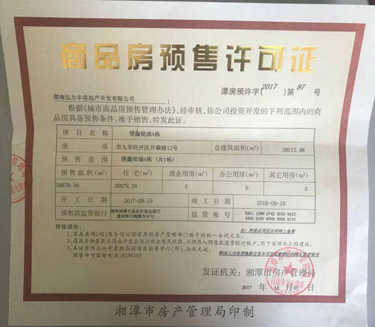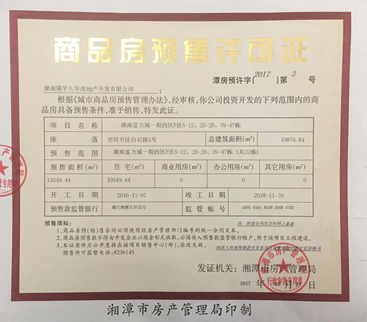 01 湖南富力城一期西區(qū)F區(qū)部份棟號(hào)的預(yù)售許可證