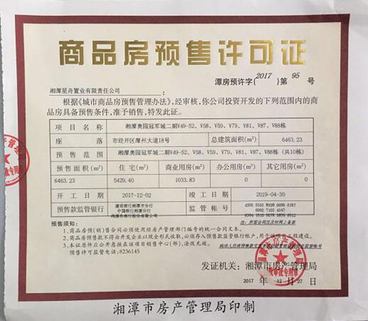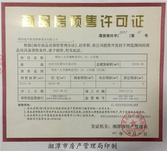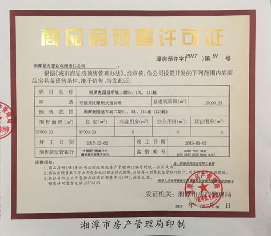 湘潭奧園冠軍城二期9L、10L、11L棟(共3棟)預(yù)售許可證