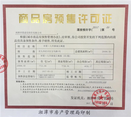 04 祥霖·九華新城公寓樓(共1棟)預(yù)售許可證