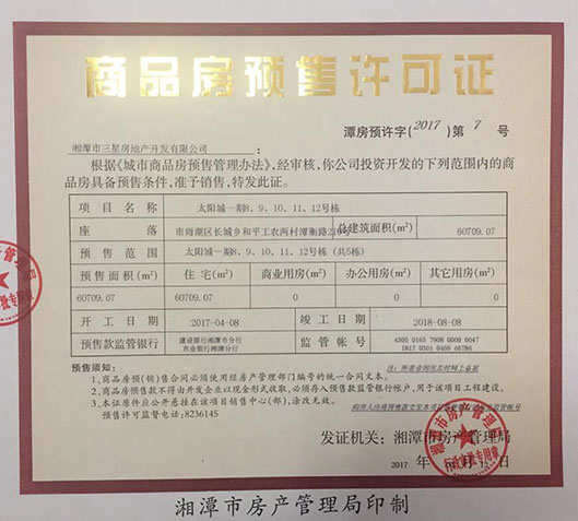01 太陽(yáng)城一期8-12棟(共5棟)的預(yù)售許可證
