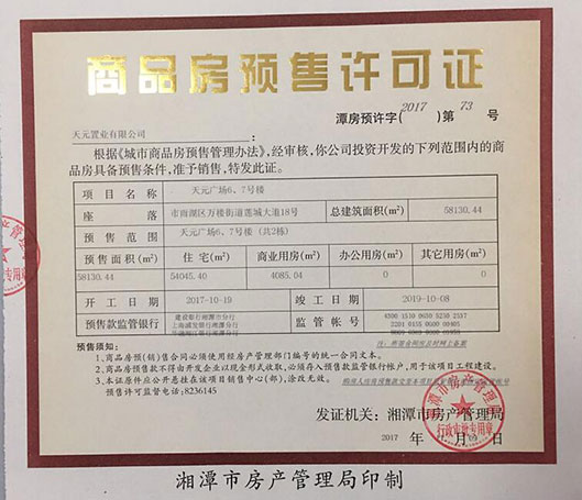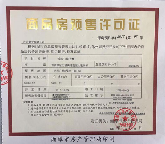 天元廣場(chǎng)8號(hào)棟(共1棟)預(yù)售許可證