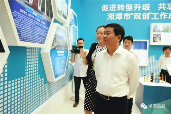 2017年全國(guó)大眾創(chuàng)業(yè)萬(wàn)眾創(chuàng)新活動(dòng)周湖南分會(huì)場(chǎng),副省長(zhǎng)何報(bào)翔參觀湘潭高新區(qū)展館