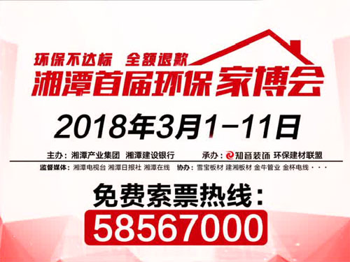 2018年3月3日,知音裝飾總部10:00——17:30湘潭首屆『環(huán)保家博會』【知音裝飾】專場鉅惠。
