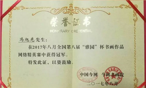 馮旭光(網(wǎng)名:扎西),字號(墨緣),1954年出生,居住湖南湘潭,現(xiàn)為中國教育電視臺水木丹青會員,中國今網(wǎng)書畫院高級書法師,主要活動于中國名家書畫群、全國名人書畫精英群、最高書畫網(wǎng)絡(luò)交流群、中國書畫藝術(shù)聯(lián)盟群、中國名家名人交流藝術(shù)中心群、名族脊梁(名人名家書畫論壇)群、極品書畫網(wǎng)絡(luò)和真跡杯最具影響力群、北京文化人和北京楊家書畫館等28家社會群體和網(wǎng)絡(luò)平臺。