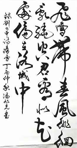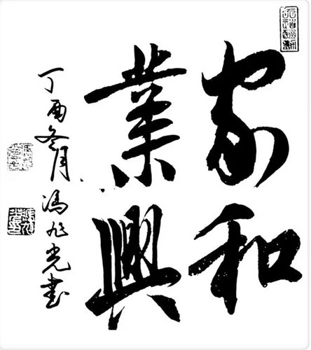 中國華夏萬里行書畫家協(xié)會執(zhí)行副會長黃小克評價(jià):馮旭光先生的作品設(shè)計(jì)金文大篆、行楷、隸書、行書、行草、草體等多種書體。彰顯其具有堅(jiān)實(shí)的書法功底。筆法出入有度,蒼勁有力、線條流暢、氣韻貫通。作品通過輕與重、大與小、虛與實(shí)、粗與細(xì)、正與斜、上與下、左與右、大氣與秀氣筆法的多種變化,使其作品創(chuàng)作水平達(dá)到一定的藝術(shù)境界,形成了自家的風(fēng)格,具有良好的觀賞效果,使書法藝術(shù)推向到一個(gè)新的境界。