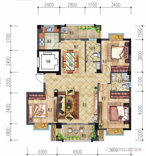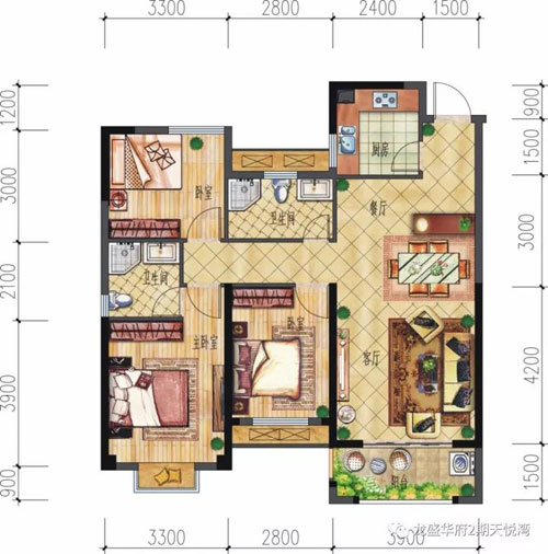 105㎡ 實(shí)用型小3房2廳2衛(wèi) 全明、南北通透戶型