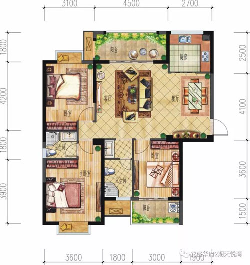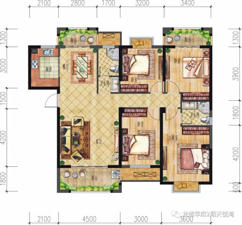 145㎡ 13.2米望江戶型王,4房2廳2衛(wèi)3陽臺