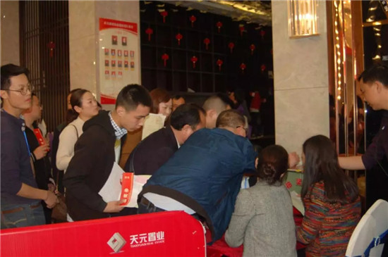8點不到,天元·御城營銷中心前便排起了長龍,客戶們有序的簽到,在領取了開發(fā)商精心為大家準備的冷飲和精美禮品后,陸續(xù)入座觀眾席的客戶便開始翹首以盼,等待此次活動的正式開始。