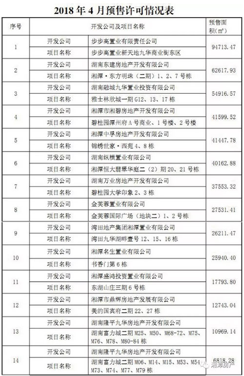 湘潭房產(chǎn)網(wǎng)5月28日訊 根據(jù)湘潭市住建局發(fā)布數(shù)據(jù)顯示,2018年4月份湘潭市城區(qū)共計(jì)批準(zhǔn)商品房預(yù)售許可證14個(gè),共計(jì)批準(zhǔn)新建商品房預(yù)售50.1萬(wàn)㎡,同比上升4.42%;新建商品房共計(jì)銷售39.71萬(wàn)㎡;截止至2018年4月底,湘潭市新建商品房剩余可售量為215.73萬(wàn)㎡,其中,商品住宅剩余可售量為125.19萬(wàn)㎡。