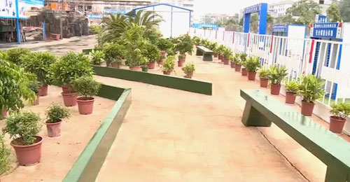 鮮花綠草隨處可見,工地空氣清新宜人,材料擺放井然有序,工地即是“花園”。