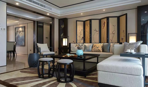 中式風(fēng)格講究的是韻味、優(yōu)雅與大氣,而現(xiàn)在更多的是用中式元素來營(yíng)造一個(gè)懷舊的氛圍。用傳統(tǒng)家具、字畫、匾幅、掛屏、盆景、瓷器、古玩、屏風(fēng)、博古架等,追求一種修身養(yǎng)性的生活境界;表達(dá)對(duì)清雅含蓄、端莊豐華的東方式精神境界的追求。