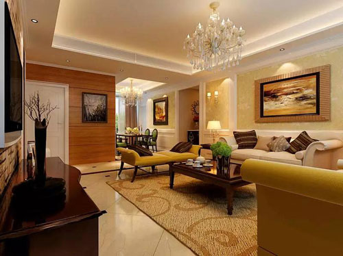崇尚自由美式風(fēng)格客廳一般要求簡(jiǎn)潔明快,同時(shí)裝修較其它空間要更明快光鮮,通常使用大量的石材和木飾面裝飾。