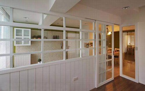 自行以木作訂制加上噴砂玻璃,打造猶如置身童話木屋內(nèi)的可愛木門。