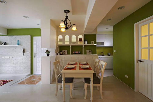 以墨綠色和白色基本元素,鋪敘溫暖簡樸的用餐氛圍。