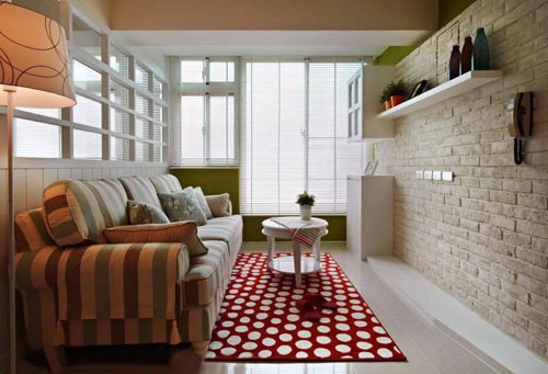 以百葉、文化石、格子造型打造出濃厚的鄉(xiāng)村風(fēng)味,而帶有復(fù)古感的沙發(fā)及層板展示,更為空間注入故事性,使房子有了生命力。