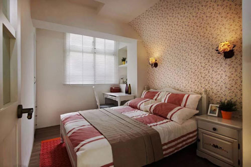 墻面使用小碎花壁紙美化,增添女性偏好的柔美質(zhì)感。