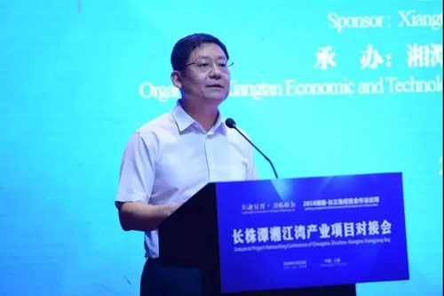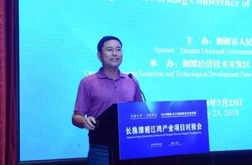 湘潭經(jīng)開區(qū)黨工委書記、湘潭綜保區(qū)黨工委書記孫銀生作投資環(huán)境推介