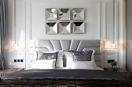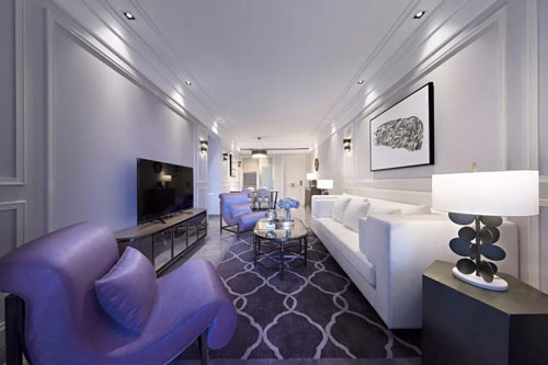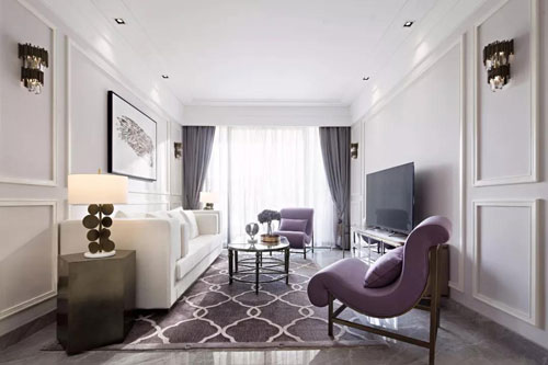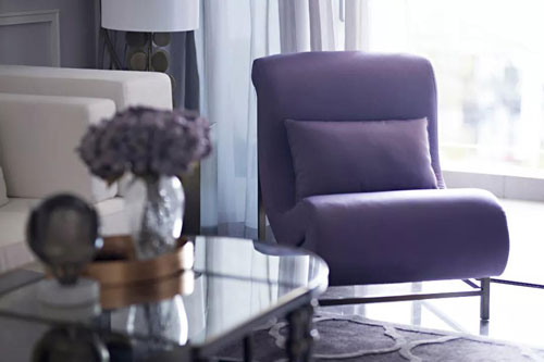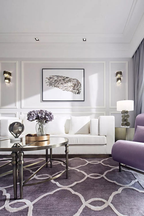 紫色自帶的屬性默認(rèn)為浪漫、高貴、深刻,加入高級灰的格調(diào),即若都是清冷的色澤,而將軟包的布藝方式碰撞交織,優(yōu)雅而時尚的視覺觀感展現(xiàn)出的高端奢美的極致魅力,即刻成為空間之中的吸睛爆點。
