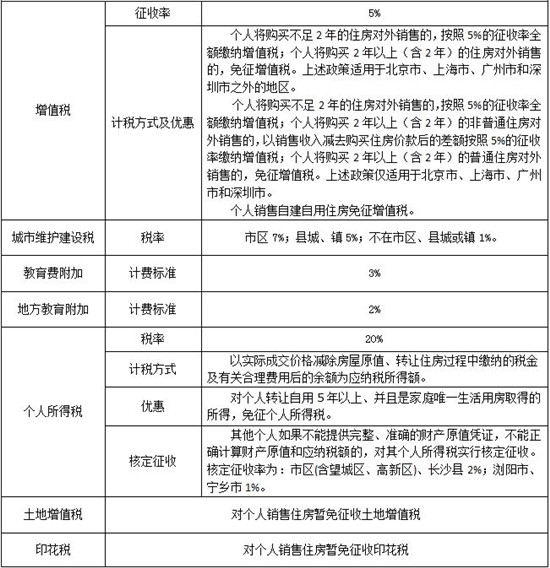 湘潭房產(chǎn)網(wǎng)8月15日訊 個人住房交易相關(guān)稅費(fèi)一覽表