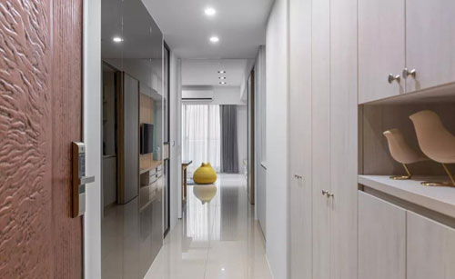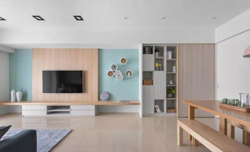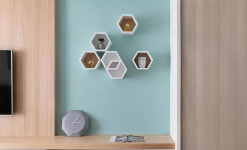 湘潭房產(chǎn)網(wǎng)8月21日訊 敘淺綠色調(diào),于一旁加入蜂巢造型的開放柜體、達(dá)成聚焦視覺作用。
