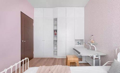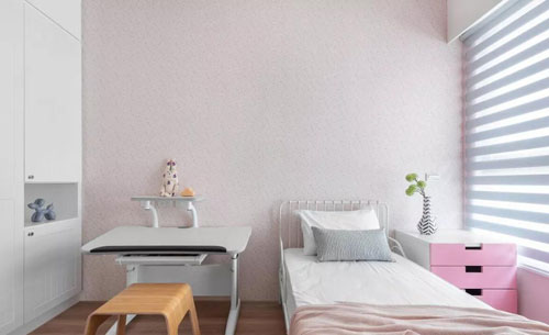 兩間次臥,分別坐擁優(yōu)質(zhì)的采光,女孩房以粉色調(diào)為主,借著壁紙、家具營(yíng)造甜美公主風(fēng)。