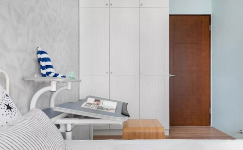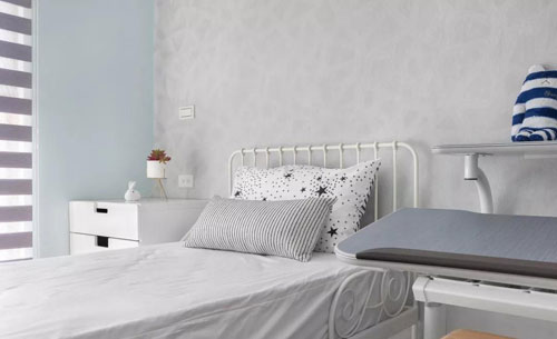 而男孩房則呈現(xiàn)淺藍(lán)主調(diào),沒有過多復(fù)雜的設(shè)計(jì),純粹且充滿紓壓質(zhì)感!