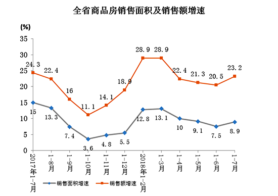 1-7月,商品房銷售面積4474.18萬平方米,同比增長8.9%。其中,住宅銷售面積增長11.2%,辦公樓銷售面積下降5.0%,商業(yè)營業(yè)用房銷售面積增長7.1%。商品房銷售額2571.70億元,增長23.2%。其中,住宅銷售額增長26.1%,辦公樓銷售額增長14.2%,商業(yè)營業(yè)用房銷售額增長19.6%。