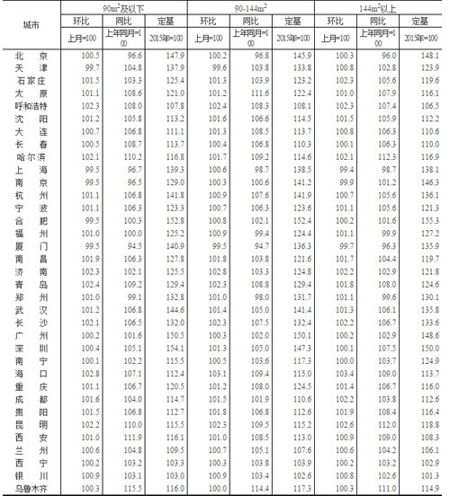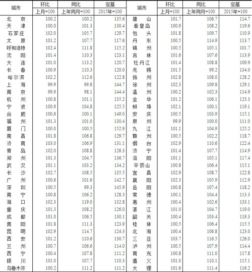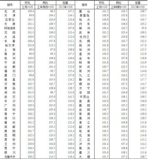 表3:2018年7月70個(gè)大中城市新建商品住宅銷售價(jià)格分類指數(shù)(二)