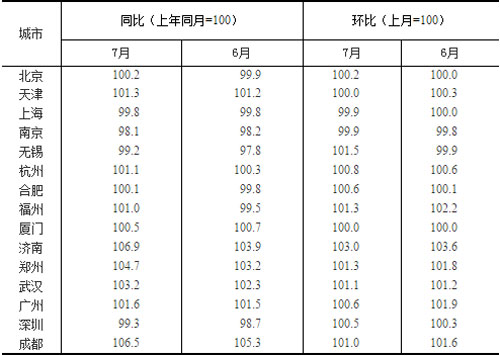 在15個(gè)熱點(diǎn)城市新建商品住宅銷售價(jià)格變動(dòng)對比表中,濟(jì)南2018年7月份分別同比上漲了6.9%,在15個(gè)城市中漲幅最大。此外,無錫2018年7月份環(huán)比上漲了1.5%,位列15個(gè)熱點(diǎn)城市第一,濟(jì)南6月份環(huán)比上漲了3.6%,位列15個(gè)熱點(diǎn)城市之一。