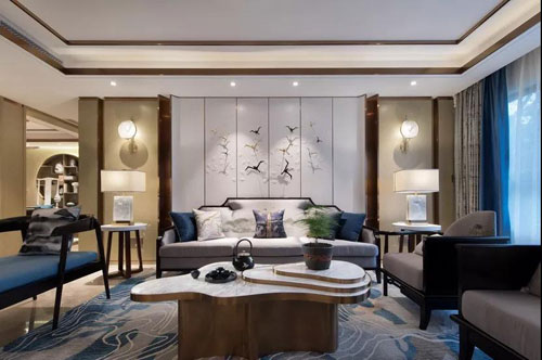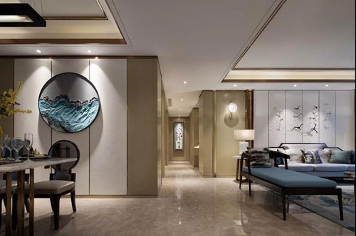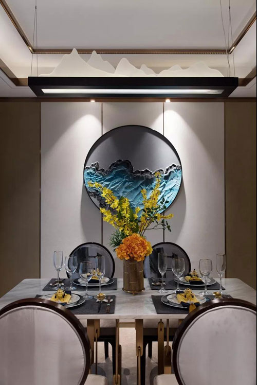 新中式風(fēng)格設(shè)計(jì)以“山水如畫,層巒疊翠”為設(shè)計(jì)靈感,融合傳統(tǒng)和現(xiàn)代、東方和西方的文化元素,詮釋居主理想生活的品質(zhì)和樂趣,營造極具人文、禪意的舒適空間。