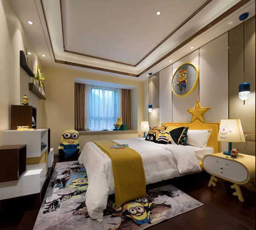 兒童房以卡通人物小黃人為主題,空間多了一份俏皮的元素,為小孩的童年留下一段美好的回憶。