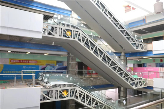 ▲一、三館:市場(chǎng)部分精裝修1-4層已基本完工,電梯安裝完成,扶梯安裝率約50%,欄桿安裝完成,玻璃安裝率65%。