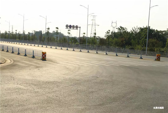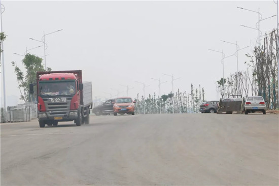 板塘十一號(hào)路西廣場(chǎng)路段已竣工,來往車輛川流不息