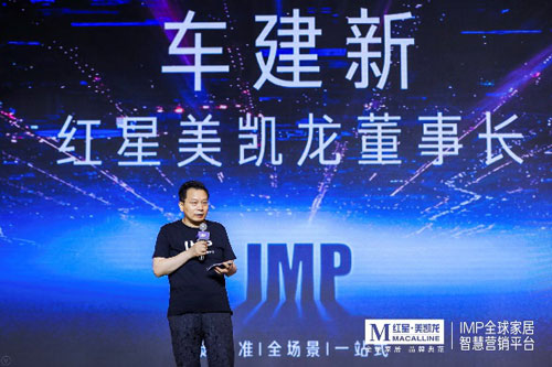 為發(fā)布史無前例賦能行業(yè)的IMP全球家居智慧營銷平臺(tái),紅星美凱龍董事長車建新史無前例地沒有穿著他經(jīng)典的千鳥格襯衣,而是換上了IMP平臺(tái)的專屬T恤。