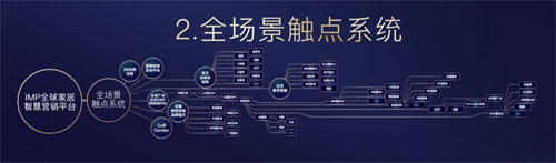 為了實(shí)現(xiàn)全周期個(gè)性化營銷,IMP平臺(tái)搭建了五大系統(tǒng),包括超精準(zhǔn)數(shù)據(jù)系統(tǒng)、全場景觸點(diǎn)系統(tǒng)、一站式服務(wù)系統(tǒng)、數(shù)字化工具系統(tǒng)、智能化管理系統(tǒng)。