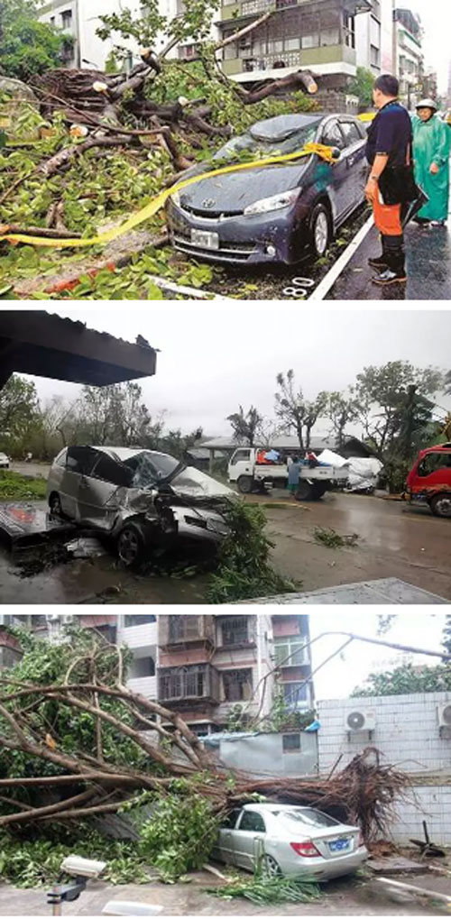 下圖完美詮釋臺風(fēng)來臨時,有“家”的車和無“家”的車區(qū)別。