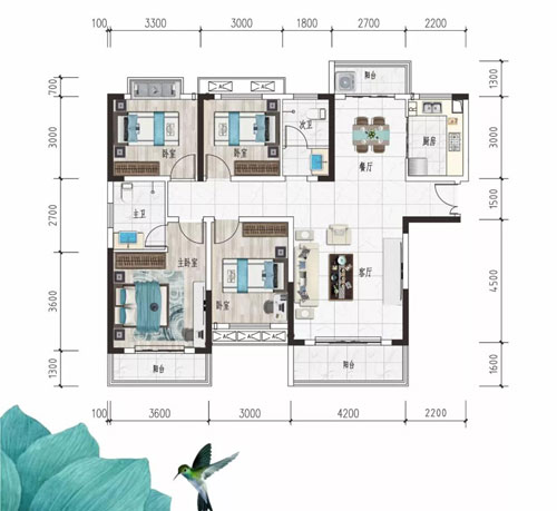 四房兩廳兩衛(wèi) 建筑面積:約143.54㎡