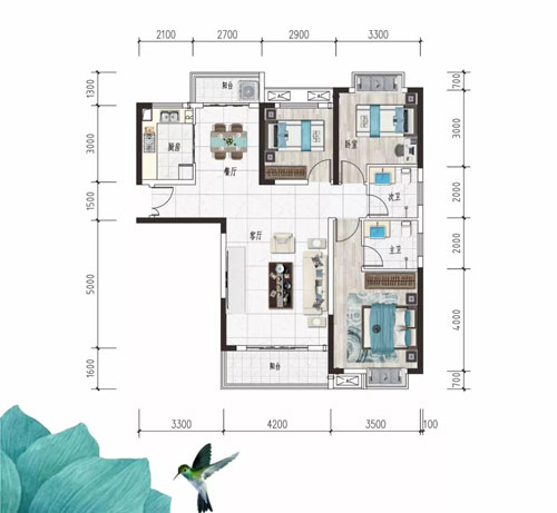 三房兩廳兩衛(wèi) 建筑面積:約123.70㎡