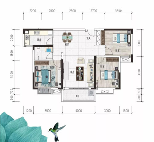 三房兩廳一衛(wèi) 建筑面積:約108.91㎡