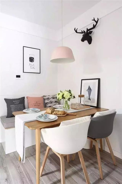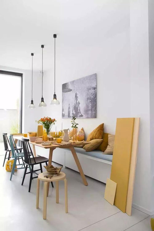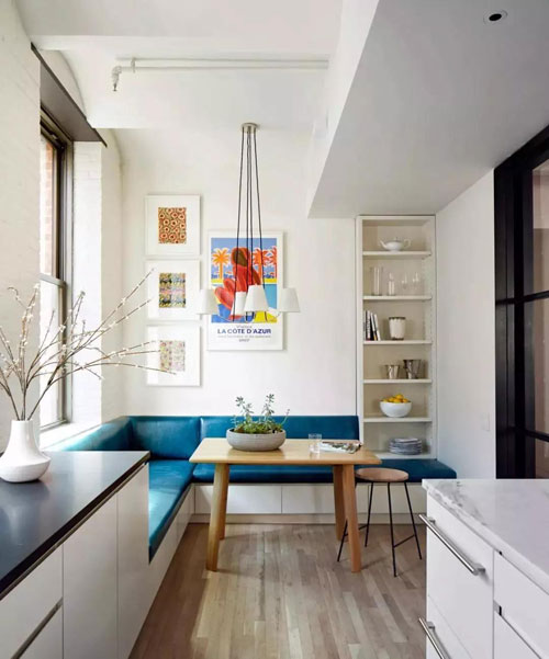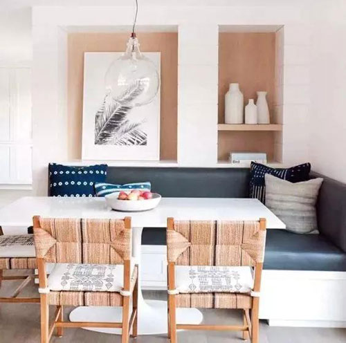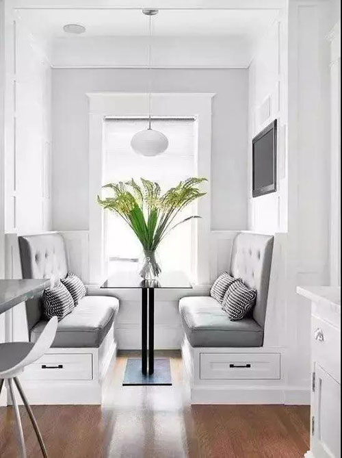 卡座底部也可以做成柜子或抽屜,兼顧座椅與收納機(jī)能,讓視覺保持干凈整潔的同時(shí),還增添了空間的美感,妥妥的小戶型神器~~~~